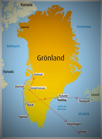 Grönland ist etwa 25 Mal so groß wie Österreich. Gerade einmal 55.000 Menschen leben auf der größten Insel der Erde, die zu 80 % mit Eis bedeckt ist. Als Lebensgrundlage dienen ihnen in erster